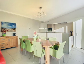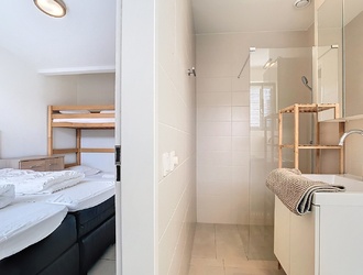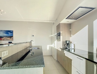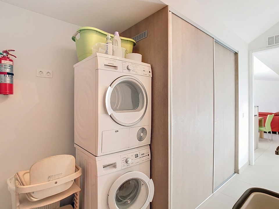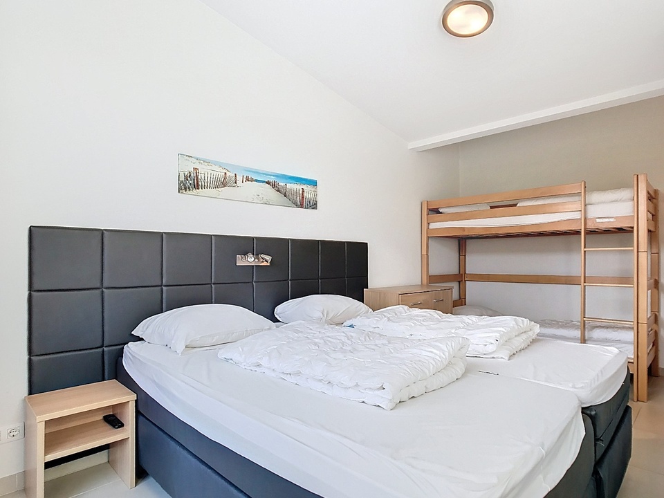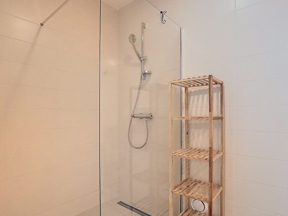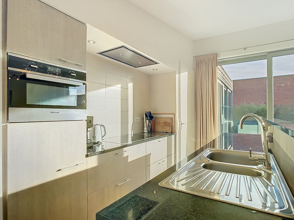 The modern open kitchen is finished to perfection and offers everything a cooking enthusiast could wish for: a sink island, high-quality built-in appliances and plenty of workspace. This is where the best conversations, the tastiest meals and the warmest moments take place. There is also a practical utility room — with owner's cupboard, washing machine, dryer, central heating system and extra storage space — ideal for making life on the coast even more carefree. Thanks to its own outside door, this is also the perfect place to put your things after a day at the beach.