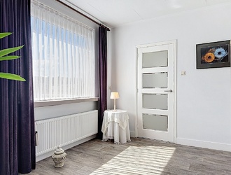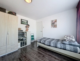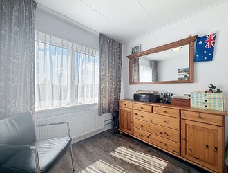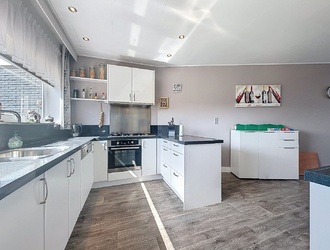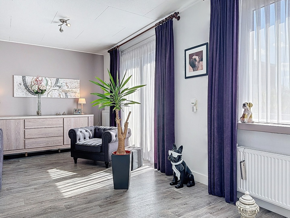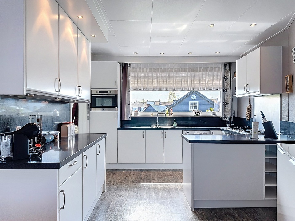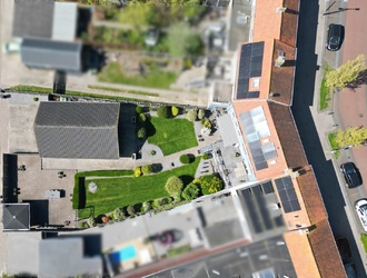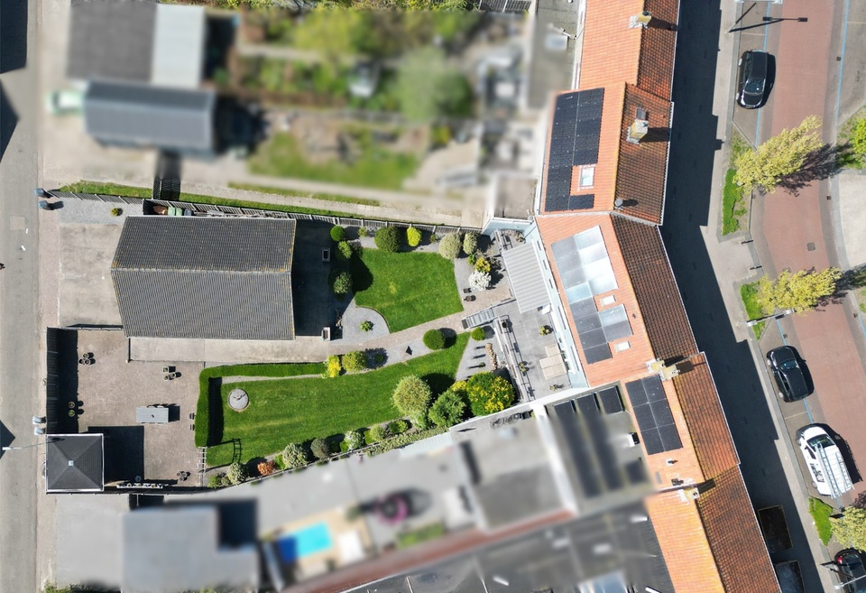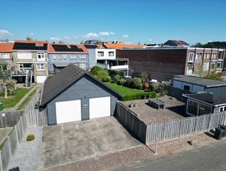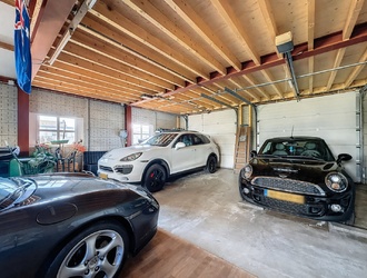 At the rear of the plot, you will find an exceptionally spacious, cavity-wall-constructed garage building, fitted with two electric sectional doors. In front of the garage, there is ample space to park several cars on your own property – a rare convenience that adds to the sense of freedom and ease.