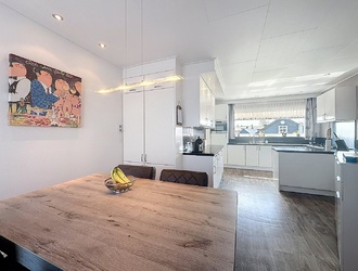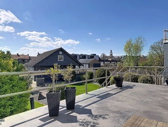 The garden has been landscaped with care and an eye for atmosphere and features several terraces, ensuring there is always a spot to be found in the sun or, conversely, in the shade. The electricity-supplied gazebo makes it possible to linger outdoors until the late hours, whilst the space lends itself perfectly to cosy dinners and atmospheric barbecue evenings with family and friends.
