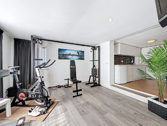 The lower-level spaces beneath the balcony are currently used as a guest room and a gym. This entire floor is therefore fully furnished and ideally suited for use as a guest accommodation or potentially as a granny flat.