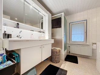 Au premier étage, vous trouverez trois chambres de bonne taille et une salle de bains propre avec cabine de douche, baignoire et toilettes. Le deuxième étage offre également de l'espace pour une éventuelle quatrième chambre ou un espace de travail inspirant - parfait pour ceux qui veulent travailler à domicile ou qui recherchent un espace de vie supplémentaire. La large lucarne du côté du jardin apporte également beaucoup de lumière naturelle à cet étage.