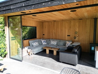 L'espace comprend un salon spacieux qui s'étend sur toute la profondeur de la maison. Il est également doté d'une cuisine ouverte avec buanderie et d'un espace semi-ouvert plus privé, idéal pour un bureau ou une salle de jeux pour les plus petits membres de la famille. L'intérieur et l'extérieur se rejoignent grâce à une large baie vitrée d'un côté et des portes-fenêtres donnant sur le jardin de l'autre côté.