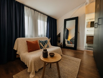 Ensuite, vous trouverez le salon accueillant, où la cheminée donne à l'espace une dose supplémentaire de charme. Le coin salon respire la chaleur et la convivialité. Ici, vous pourrez vous détendre complètement après une longue journée, ou profiter de soirées chaleureuses en compagnie. Les grandes fenêtres apportent une belle luminosité et une atmosphère agréable tout au long de la journée.