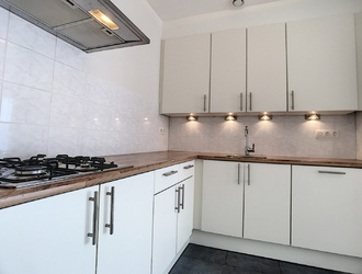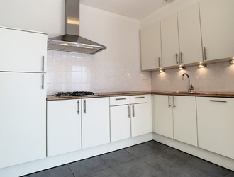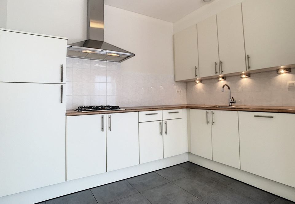 De entree is voorzien van een nette tegelvloer en de hal leidt u naar de diverse vertrekken. De lichtrijke woonkamer voorzien van parketvloer, geeft uit op het zonnige terras. De open keuken is ingericht met 4 pits kookplaat, dampkap, koelkast, vaatwasser en beschikt over voldoende kastruimte.
