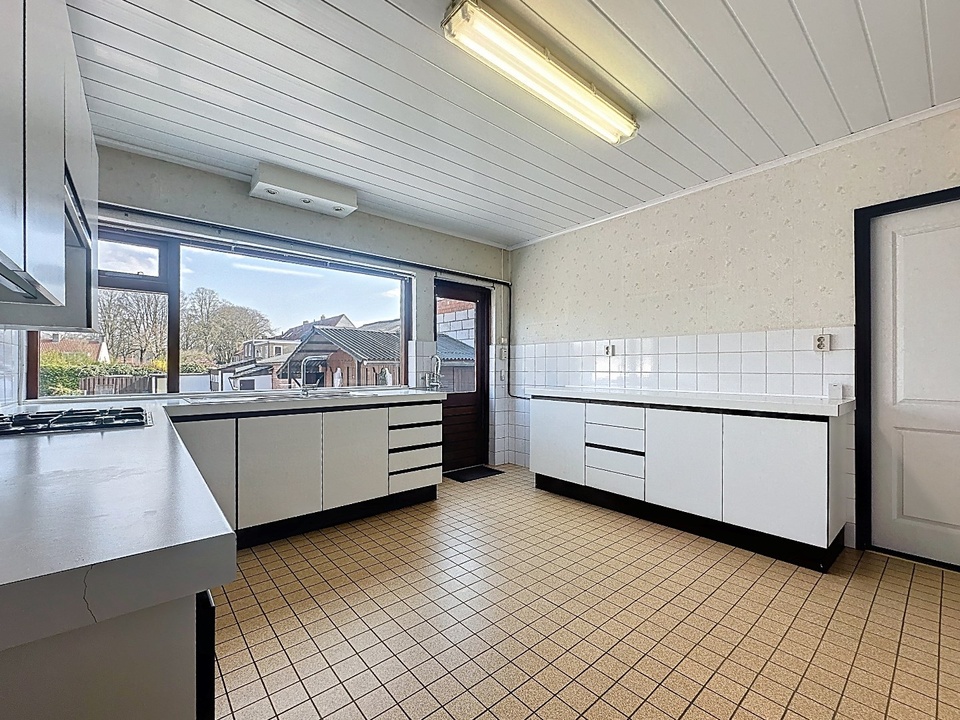 U betreedt de woning via de inkomhal die bijna helemaal tot achterin de woning doorloopt. Hier bevinden zich de trapopgang naar boven en de toegangsdeur tot de dichte keuken waar vanuit u zicht heeft op de diepe tuin. De keuken is voorzien van een oven, 4-pits gasfornuis en een afzuigkap. Links van de keuken vindt u een berging annex bijkeuken die met een deur in twee delen is gescheiden. De ruimte biedt de nodige aansluitingen voor een wasmachine en droger en bergt ook de toegangsdeur tot de inpandige garage.