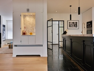 De inkomhal geeft door de stalen binnendeur onmiddellijk een zicht op de luxe keuken met prachtige marmeren werkblad. Waar mogelijk werd het originele timmerwerk van de woning behouden zoals de originele binnendeuren welke het pand een stuk authenticiteit geven. Verder werd sinds 2018 een grootschalige renovatie gepleegd waardoor een metamorfose werd gerealiseerd met heel veel smaak en kwaliteit. Binnenkomen in dit huis zal velen een "wauw' gevoel geven.