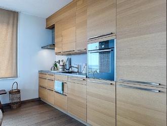 Het interieur straalt comfort en elegantie uit. De ruime entree met apart toilet en bergkast biedt een praktische indeling. Alle ruimtes zijn afgewerkt met warm eiken parket, behalve de badkamers die modern betegeld zijn. De luxe open keuken is uitgerust met allerhande inbouwapparatuur, waaronder een 4-pits inductiekookplaat, dampkap, koelkast met vriesvak, Siemens combimagnetron en Bosch vaatwasser – perfect voor culinaire genietingen.
