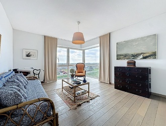 Dit prachtige hoekappartement van ca.105 m² met twee slaapkamers en twee badkamers bevindt zich op de vierde verdieping van Résidence de Wielingen. Vanuit de ruime woonkamer en vanaf het terras van 12 m² geniet u van een adembenemend panorama met bijna 180° uitzicht, van het pittoreske Knokke tot Terneuzen. De weidse blik over de Westerschelde, waar grote zeeschepen dagelijks passeren, vormt een immer fascinerend decor. De jachthaven, de imposante duinen en de uitgestrekte stranden zorgen voor een betoverende sfeer, het hele jaar door.