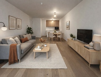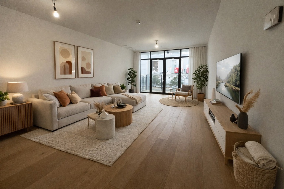 Het appartement wordt turnkey opgeleverd. De getoonde meubels zijn digitaal (AI) toegevoegd en dienen uitsluitend ter illustratie.