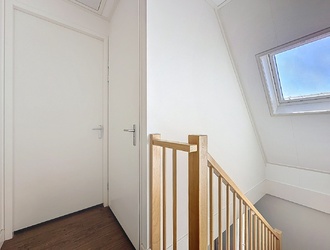De verdieping telt naast een apart toilet, twee royale slaapkamers met ieder een eigen badkamer, één met ligbad en de ander met douche, perfect voor privacy en comfort. Een handige vlizotrap geeft toegang tot de ruime bergzolder, ideaal voor extra opslag.