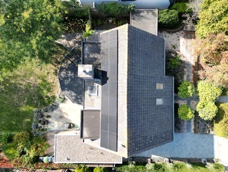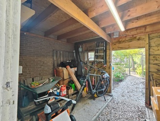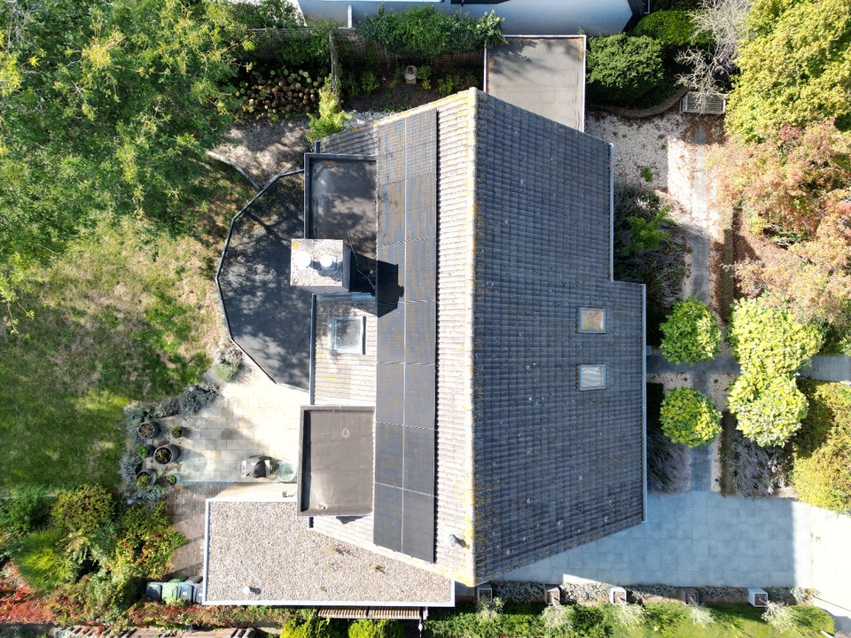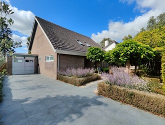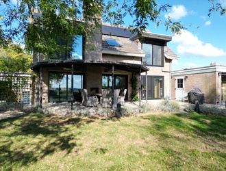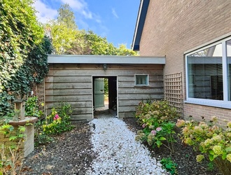 De oprit biedt plaats aan drie auto’s, met extra stalling mogelijk in de garage of een houten berging aan de voorzijde, perfect voor fietsen, gereedschap of tuinspullen. Op het dak liggen 14 zonnepanelen, die bijdragen aan een energiezuinige levensstijl.