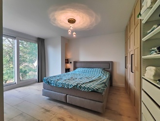 De eerste verdieping wordt betoverd door de massief eikenhouten deuren en de doorlopende Italiaanse keramische vloer. Hier vind je vier ruime slaapkamers, elk met karakter en uitzicht op de tuin en polder. De master bedroom straalt luxe uit met een kwalitatieve inbouwkast en een prachtig uitzicht. De andere slaapkamers bieden volop ruimte voor gezin, gasten of een thuiskantoor.