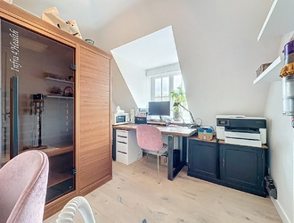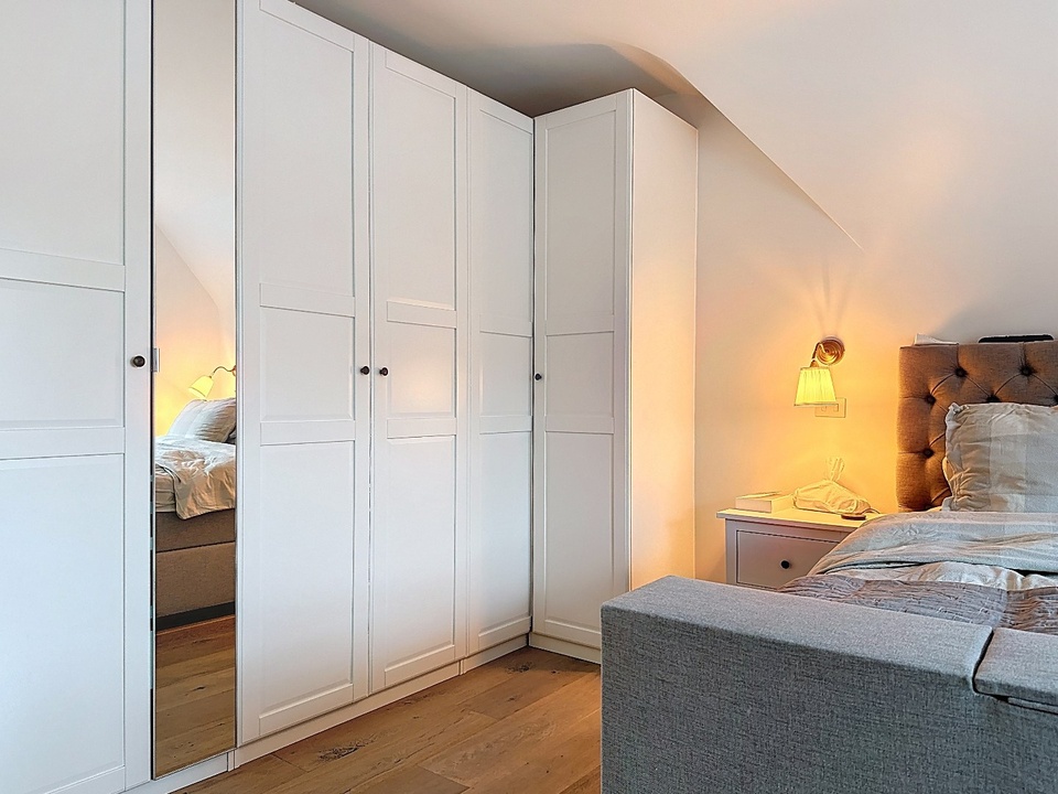 De gehele eerste verdieping is voorzien van een kwalitatieve parketvloer. Er bevinden zich hier drie ruime slaapkamers, elk met airconditioning en voldoende ruimte voor een tweepersoonsbed en kasten. Eén van de kamers is bovendien ideaal in te richten als thuiswerkplek, dressing of fitnessruimte.
