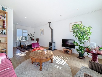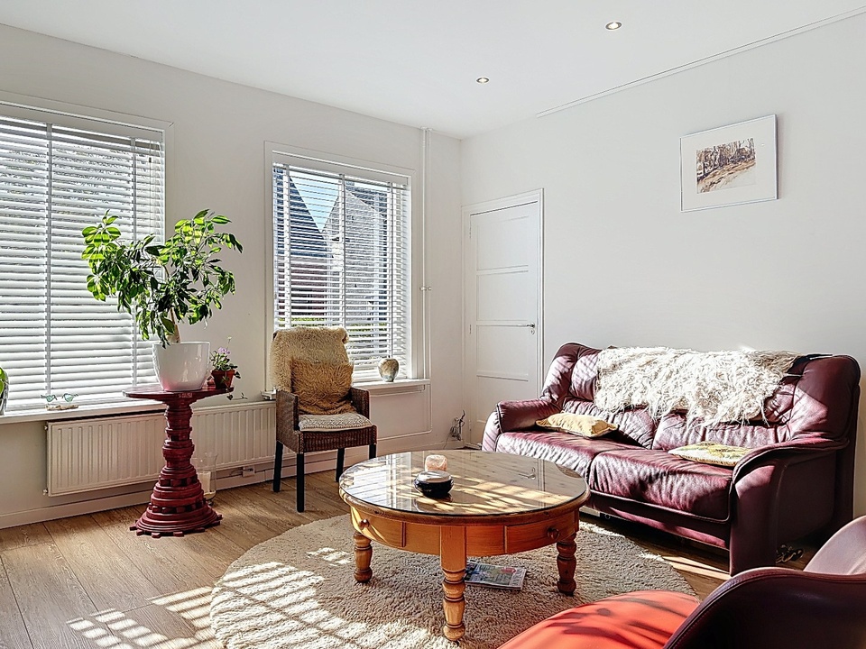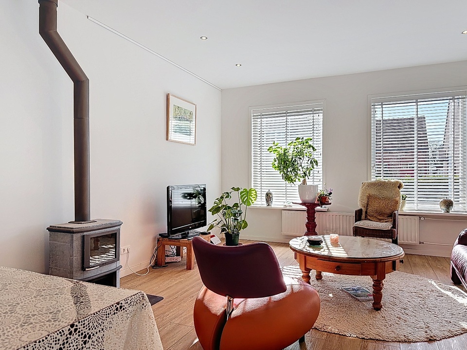 Via de entree betreedt u de woning, waar direct de lichte en open sfeer opvalt. De woonkamer is ruim en aangenaam licht dankzij de grote raampartijen. De houtkachel vormt een sfeervol middelpunt en zorgt voor extra warmte en gezelligheid tijdens de koudere maanden.
