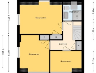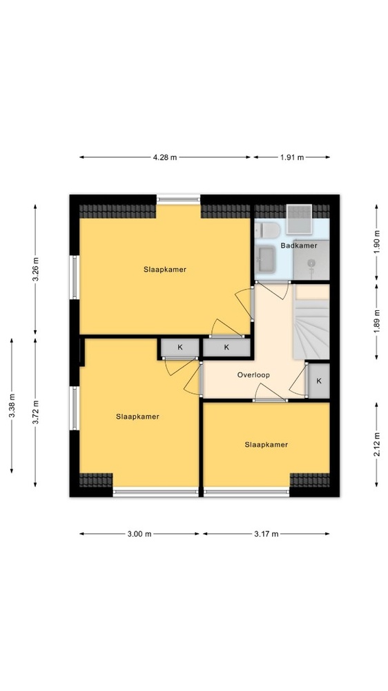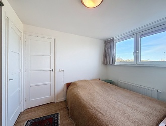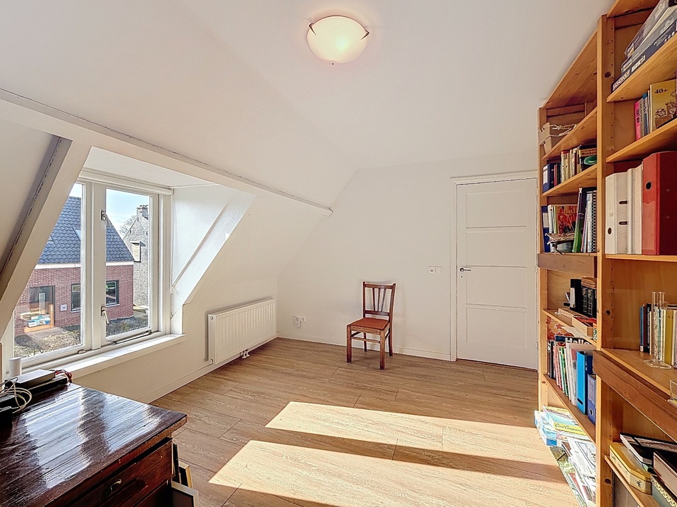 De overloop geeft toegang tot drie slaapkamers, allen met een prettige lichtinval en een rustige uitstraling. De twee slaapvertrekken aan de achterzijde zijn extra licht en ruim door de recent geplaatste brede dakkapel. De badkamer is verzorgd en voorzien van een douche, wastafel en tweede toilet.