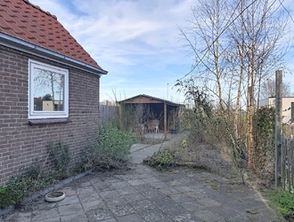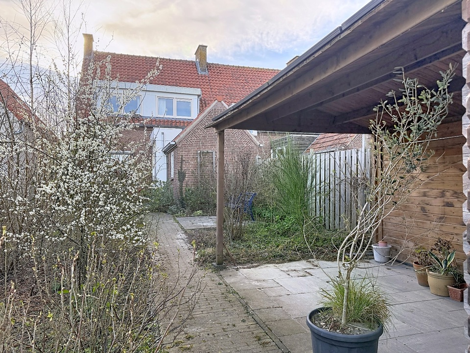 De woning beschikt over een fijne buitenruimte met voldoende privacy. Direct achter de woning ligt een groen grasveld, wat zorgt voor een vrij en ruimtelijk gevoel. In de tuin bevindt zich een praktisch schuurtje met overkapping, perfect voor het opbergen van spullen en het creëren van een gezellige zitplek waar u ook bij minder mooi weer van buiten kunt genieten. Al het vroege voorjaar is het de uitgelezen plek om fijn buiten te zitten. De orientatie op het noordoosten biedt u 's zomers een aangename ochtendzon en 's middags de nodige verkoeling.