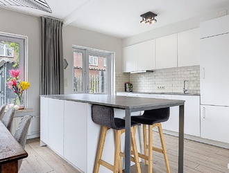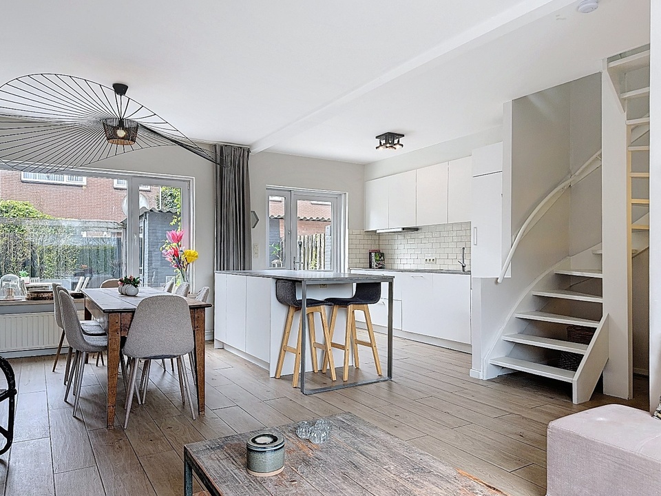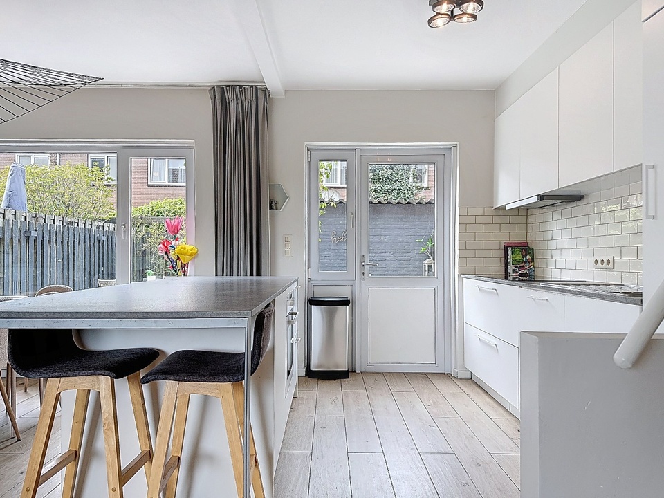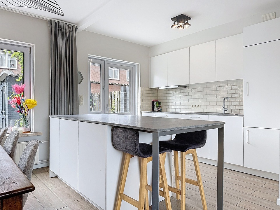 Bij binnenkomst valt direct de lichte en open leefruimte op. De woonkamer is ruim opgezet en dankzij de grote raampartijen geniet je hier van een prachtige lichtinval gedurende de dag. De moderne open keuken met kookeiland vormt het absolute hart van de woning. Hier komen koken, leven en samenzijn moeiteloos samen. Het kookeiland biedt niet alleen veel werkruimte, maar fungeert ook als gezellige zitplek, perfect voor lange diners en ontspannen avonden met familie en vrienden.