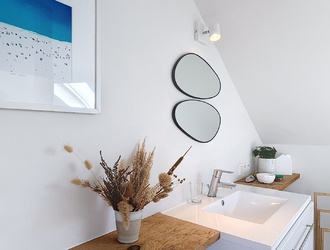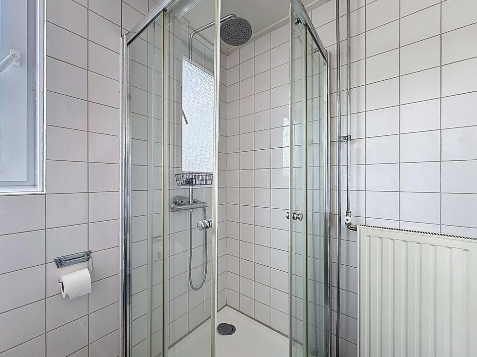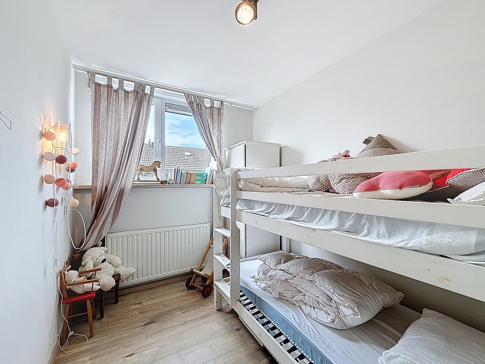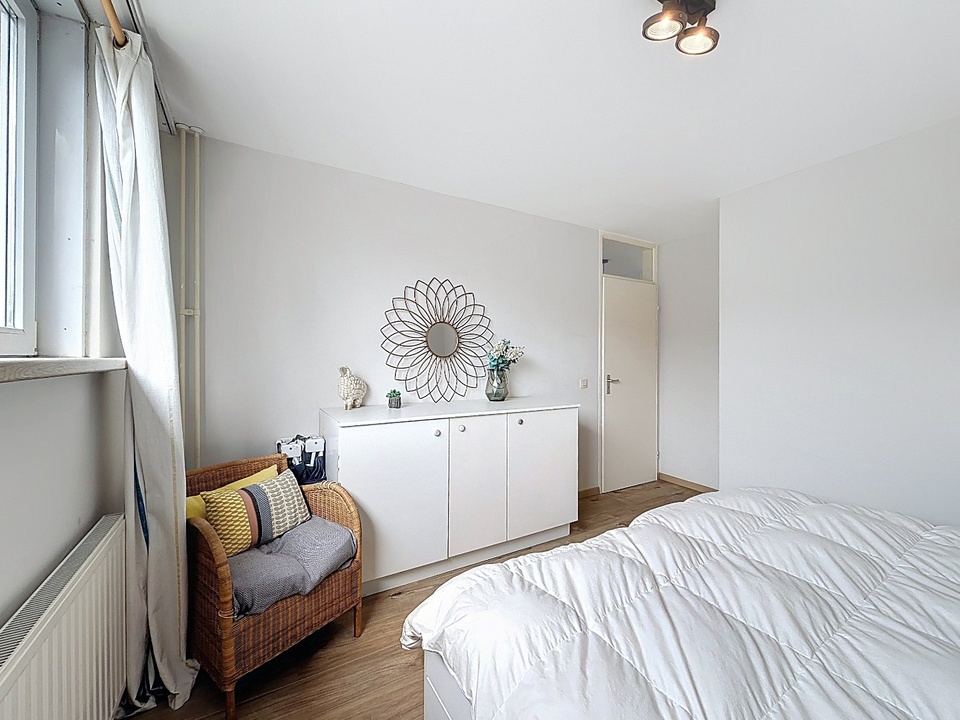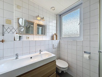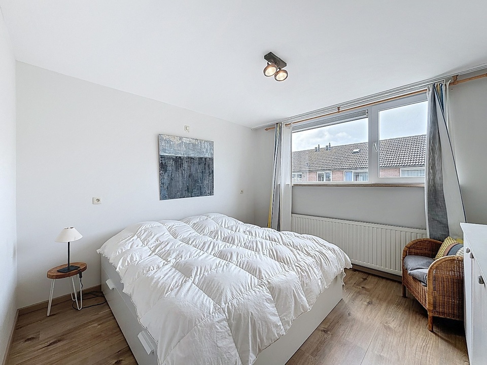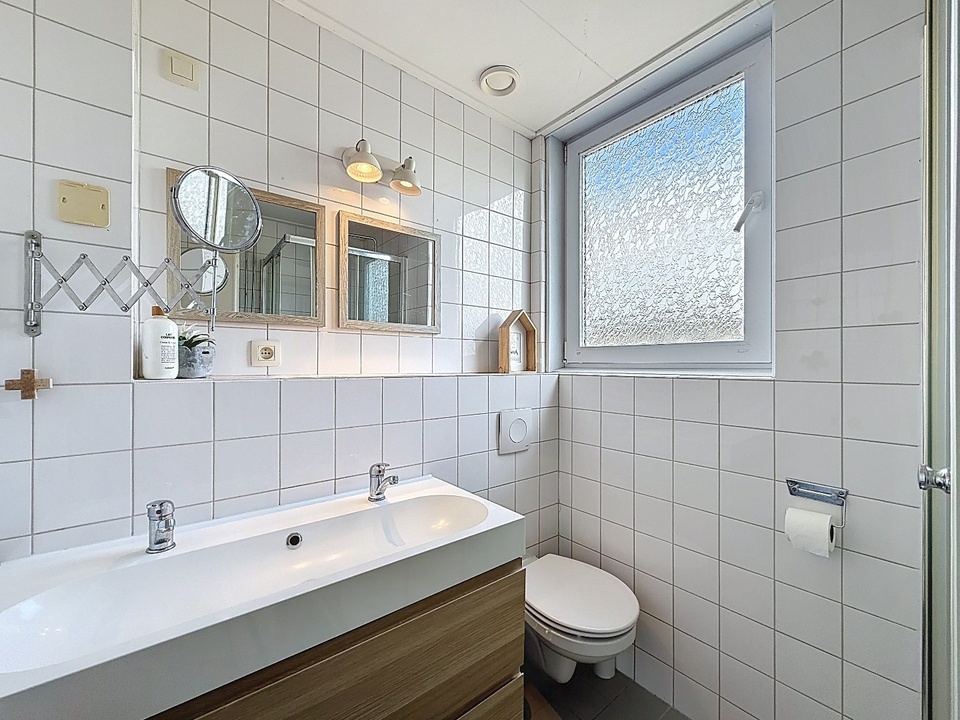 Op de eerste verdieping bevinden zich drie comfortabele slaapkamers. Elke kamer is netjes afgewerkt en beschikt over een prettige lichtinval, waardoor ze geschikt zijn als slaap-, werk- of hobbyruimte. De moderne badkamer is stijlvol ingericht en voorzien van een dubbele wastafel, een toilet en een douche. Alles is praktisch ingedeeld en uitgevoerd in een tijdloze stijl.