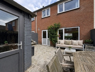 De onderhoudsvriendelijke tuin/koer biedt een fijne plek om buiten te zitten en te genieten van de rust en privacy. Of je nu rustig wilt ontbijten in de ochtendzon of ’s avonds wilt ontspannen, hier kan het allemaal. Daarnaast is er een praktische vrijstaande berging aanwezig, ideaal voor fietsen, tuinmeubilair of extra opslag.